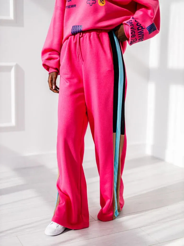 Diese Damen Jogginghose besticht durch ihre farbigen Streifen, die jedem Outfit einen modernen Akzent verleihen. Hergestellt aus hochwertige