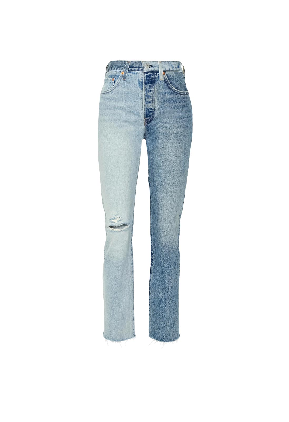 Die LEVI’S Women 501 JEANS TWO TONE INDIGO kombiniert markantes Colour Blocking mit klassischem Straight Fit für einen modernen Look. Die High Waist betont die Taille, während der gerade Beinschnitt für zeitlose Eleganz sorgt. Gefertigt aus hochwertigem 100% Baumwoll-Denim mit Used-Waschungen und Destroyed Effekten, bietet die Jeans Komfort und Stil. Praktische 5-Pocket-Details und ein ausgefranster Saum runden das Design ab. Mit einer Länge von 32 Inch ist sie vielseitig kombinierbar und ideal für modebewusste Frauen.