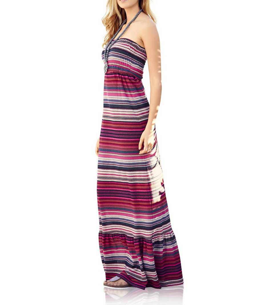 Das Rick Cardona Feinstrick-Maxikleid im angesagten Hippie-Style vereint Retro-Charme der 70er Jahre mit moderner Eleganz. Das eng anliegende, gesmokte Oberteil in femininer Bandeau-Optik mit abnehmbaren Trägern sorgt für eine perfekte Passform und vielseitige Tragemöglichkeiten. Der leicht ausgestellte Rock mit Volantabschluss verleiht Leichtigkeit und Bewegung. Mit einer Länge von ca. 138 cm (Größe 38) und der hochwertigen Feinstrickqualität aus 50% Baumwolle und 50% Polyacryl bietet das Kleid angenehmen Tragekomfort und Langlebigkeit – ideal für stilbewusste Sommermomente.